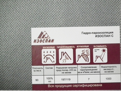 Технические характеристики гидроизоляционного материала Изоспан С: